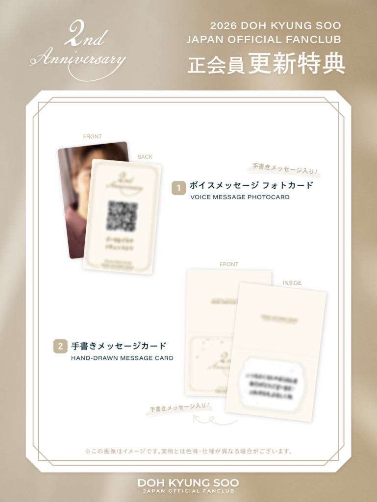 2026 DOH KYUNG SOO JAPAN OFFICIAL FANCLUBの正会員更新特典グッズをご案内いたします。