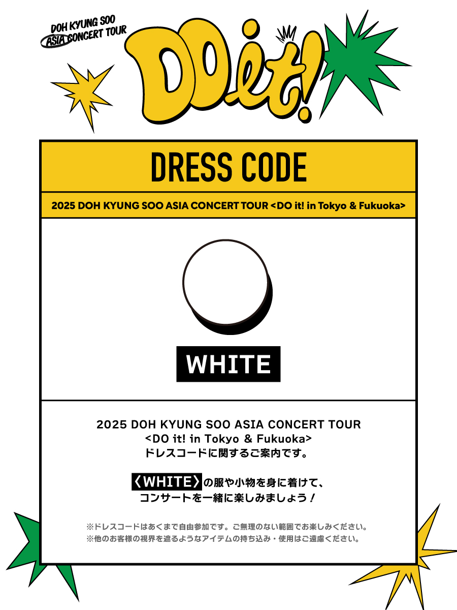 『2025 DOH KYUNG SOO ASIA CONCERT TOUR <DO it! in Tokyo & Fukuoka>』ドレスコードについてご案内いたします。